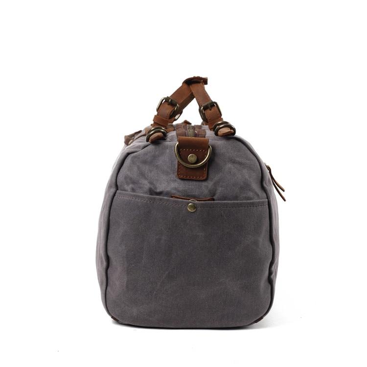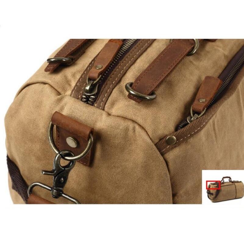 The bottom of the travel duffle bag is reinforced with zinc rivets to allow you to place your bag on various types of soil without fear of damaging the waxed cotton canvas.